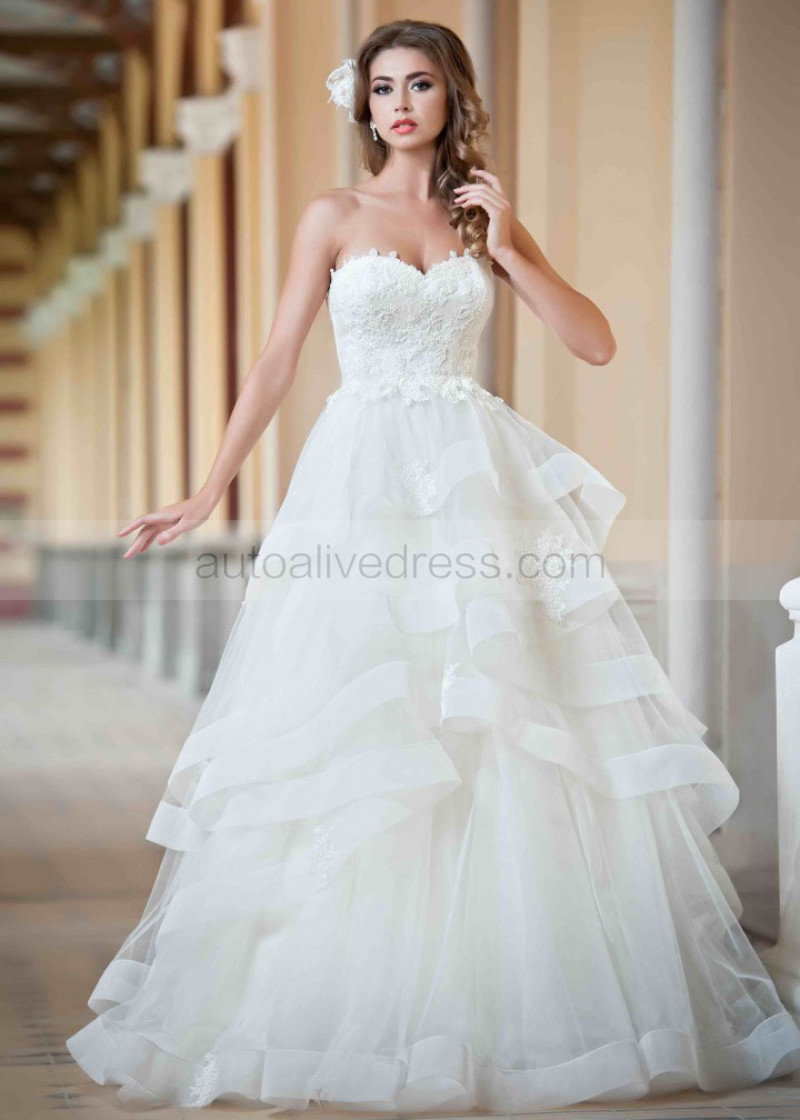 Ball Gown Sweetheart Layered Ruffled Tulle Lace Wedding ...